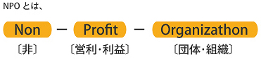 「ボランティア」が個人のスタンスを表す言葉であるのに対し、 「NPO」は組織のスタンスを示す言葉でありといえます。